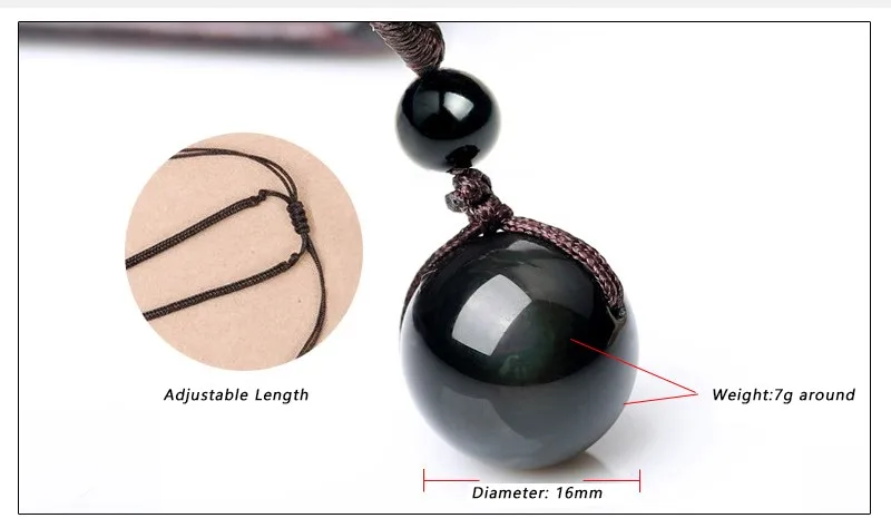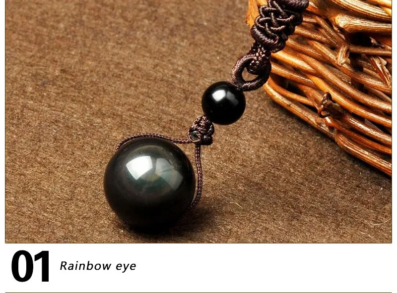 Stunning Obsidian Ball Necklace for men, with rainbow eye reflections