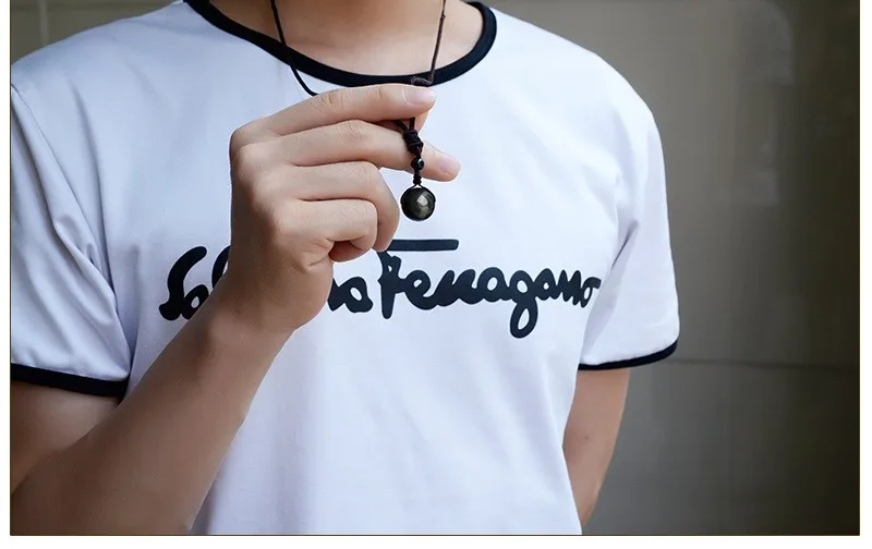 Mens Black Obsidian Ball Necklace